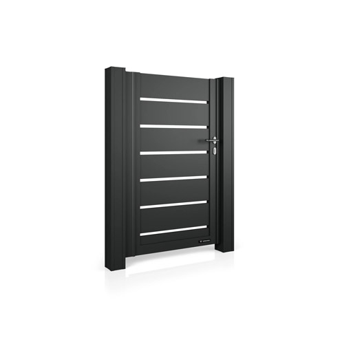 Robust aufgebaute Pforten, die mithilfe von Montageplatten an Systempfosten aus Stahl oder am Mauerwerk montiert werden. Rer Flügel bewegt sich auf den in der Torachse montierten Scharnieren.
