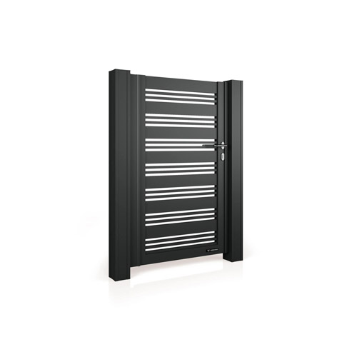 Robust aufgebaute Pforten, die mithilfe von Montageplatten an Systempfosten aus Stahl oder am Mauerwerk montiert werden. Rer Flügel bewegt sich auf den in der Torachse montierten Scharnieren.