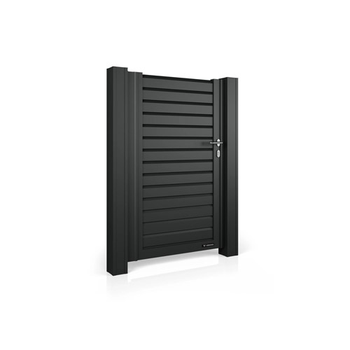 Robust aufgebaute Pforten, die mithilfe von Montageplatten an Systempfosten aus Stahl oder am Mauerwerk montiert werden. Rer Flügel bewegt sich auf den in der Torachse montierten Scharnieren.